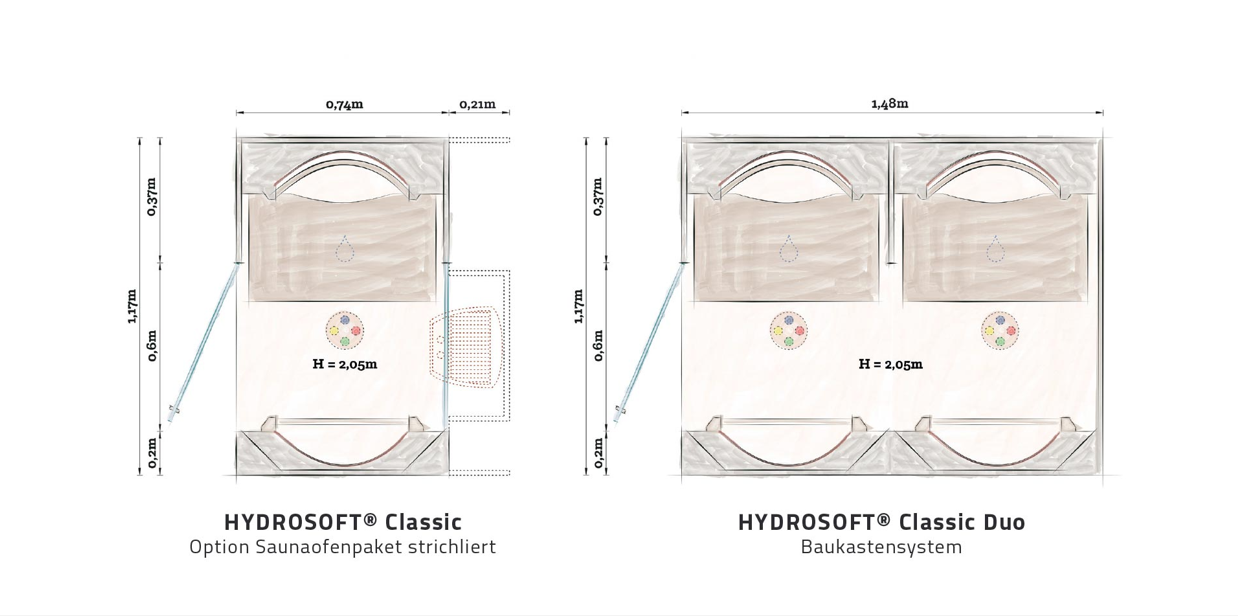 A differenza delle tradizionali saune, Hydrosoft Outdoor richiede poca energia (da 1,9 kW) e offre più valore aggiunto: la sudorazione hydrosoft depura la pelle dal cloro e dalle creme solari e procura un effetto dopo sole in caso di pelle strapazzata e arrossata.