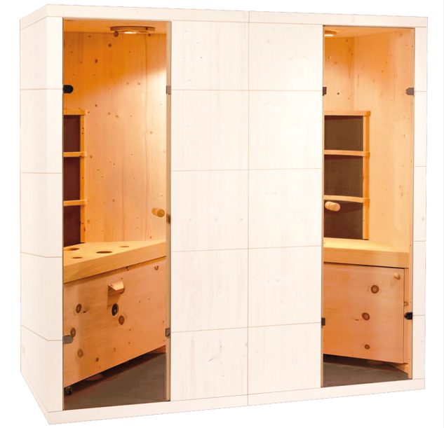 La Family Duo dispone di due superfici riscaldanti contrapposte (zona schiena dietro la seduta) che producono un piacevole calore avvolgente per entrambe le persone. E’ la giusta cabina per la coppia, per sudare intimamente in due con una vera sensazione di benessere.